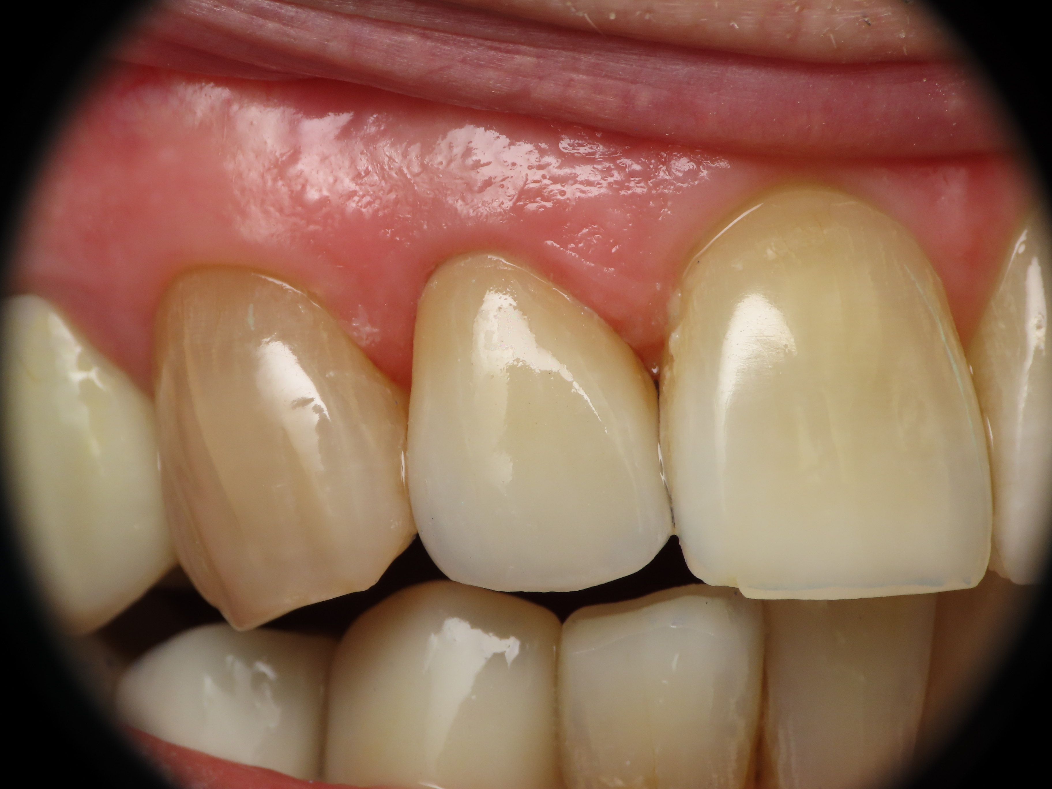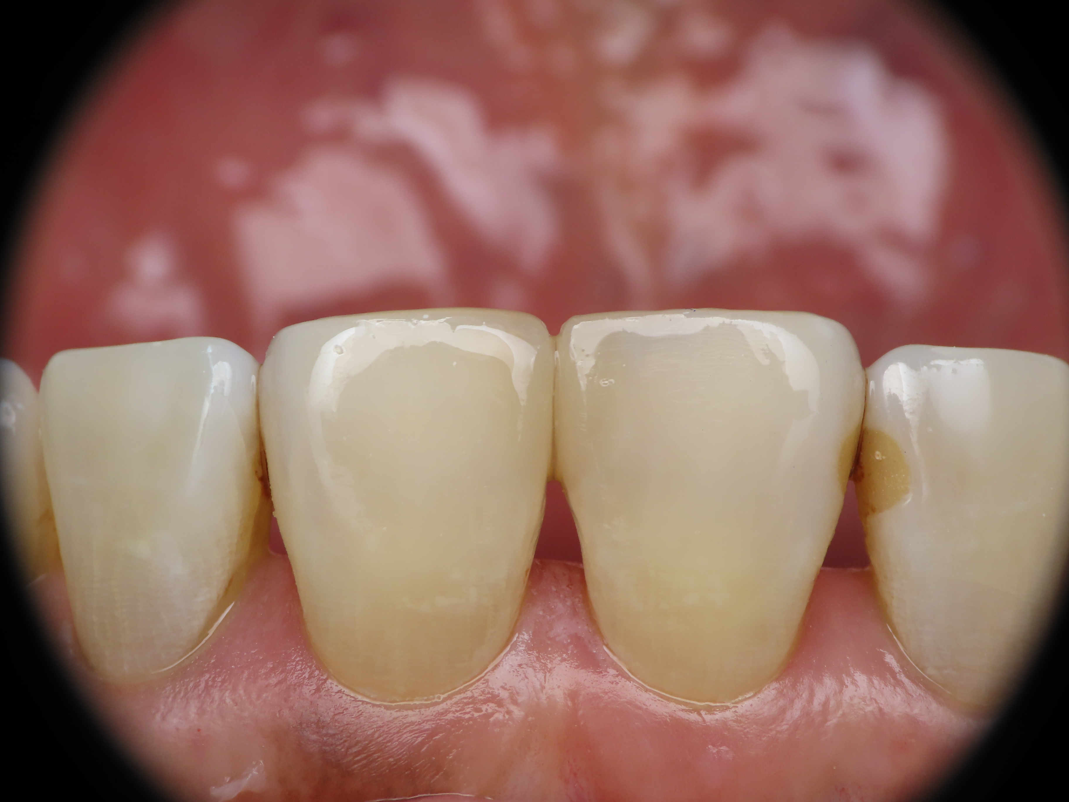 An example of a tooth with decay that was restored back to it's natural beauty. This included two different shades in two different translucencies and 3 opaquing agents. Dr. Greenslade has spent countless hours perfecting his technique in making fillings disappear on front teeth. A beautiful cosmetic result!