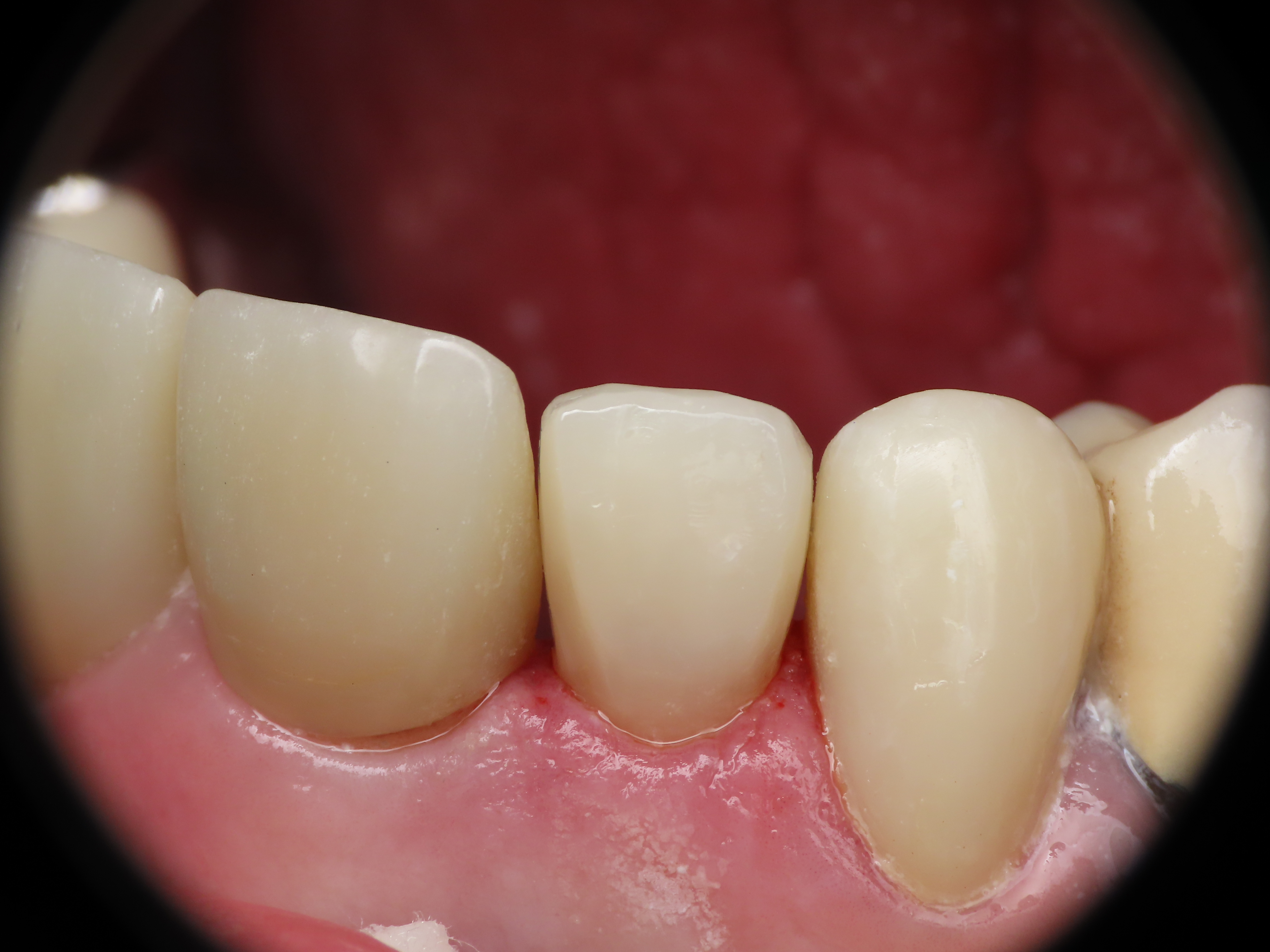 This central incisor has been given a new lease on life with a meticulously crafted implant crown. Take a moment to appreciate the seamless shade match and the life-like 'emergence profile' skillfully achieved by Dr. Greenslade and his lab, resulting in a stunningly natural and cosmetically pleasing outcome.